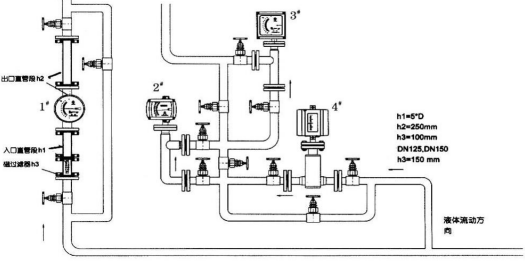 3、為了確保流量計的丈量精確性,應在流量計的進口端增加不少于10DN的直管段,出口端不少于5DN的直管段,丈量時調理控制閥必需裝置在流量計的下游。