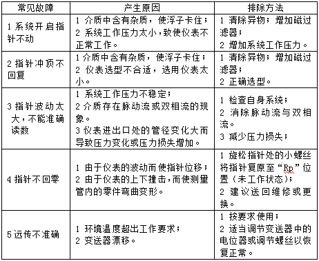 10、若開啟流量計時,由于管道內沒有壓力或系統還未到達儀表正常運用的工作壓力,必需遲緩開啟控制閥,直到系統正常,儀表方可運用,否則容易形成指針跳動或浮子的忽然撞擊而損壞的現象。